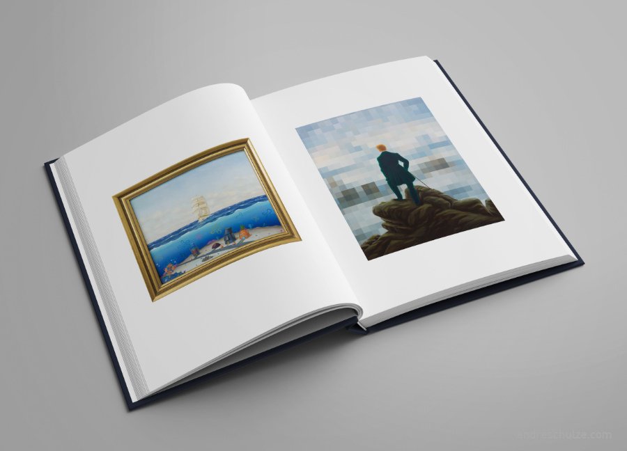 Zum 250. Geburtstag von Caspar David Friedrich widme ich mich erneut dem berühmten Romantiker. In meiner 2024er Bilderserie konzentriere ich mich auf das partielle verpixeln seiner Gemälde. In einem aufwändigen Malprozess wird das Gemälde erst auf die Leinwand malerisch übertragen und anschließend verpixelt.